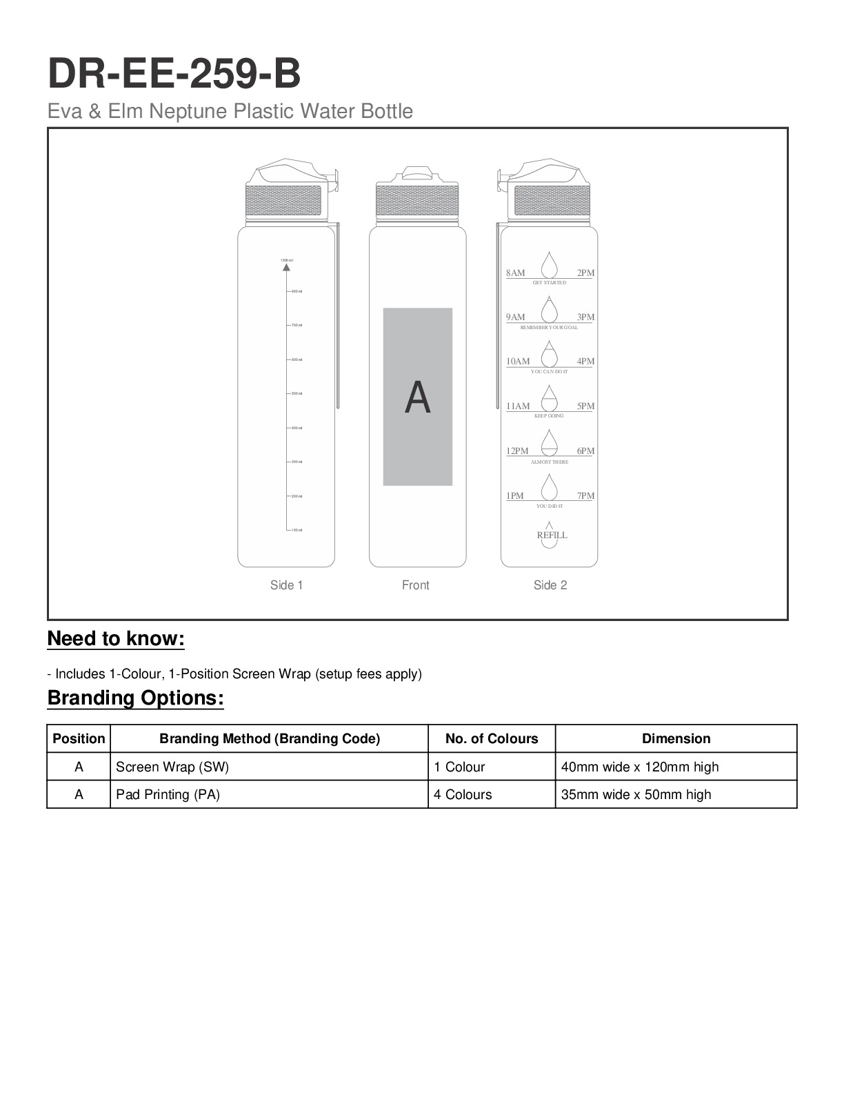 Eva & Elm Neptune Plastic Water Bottle - 1 Litre