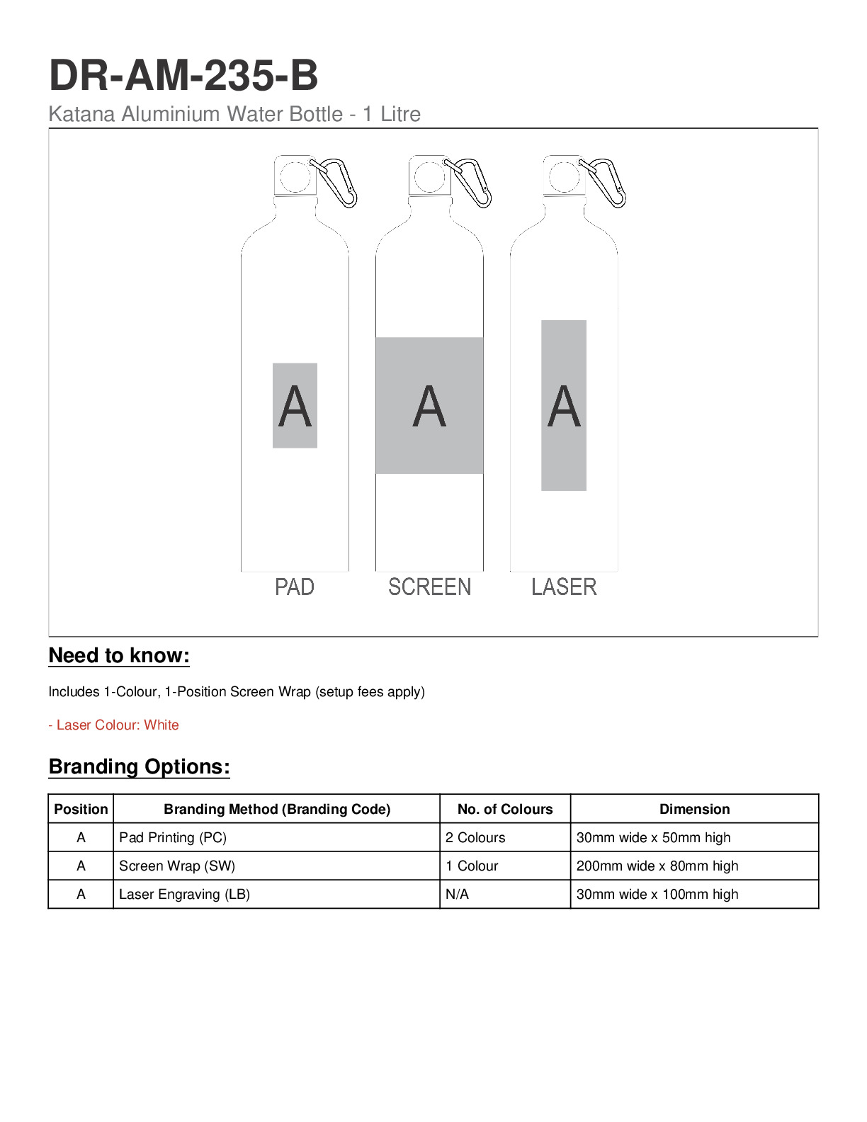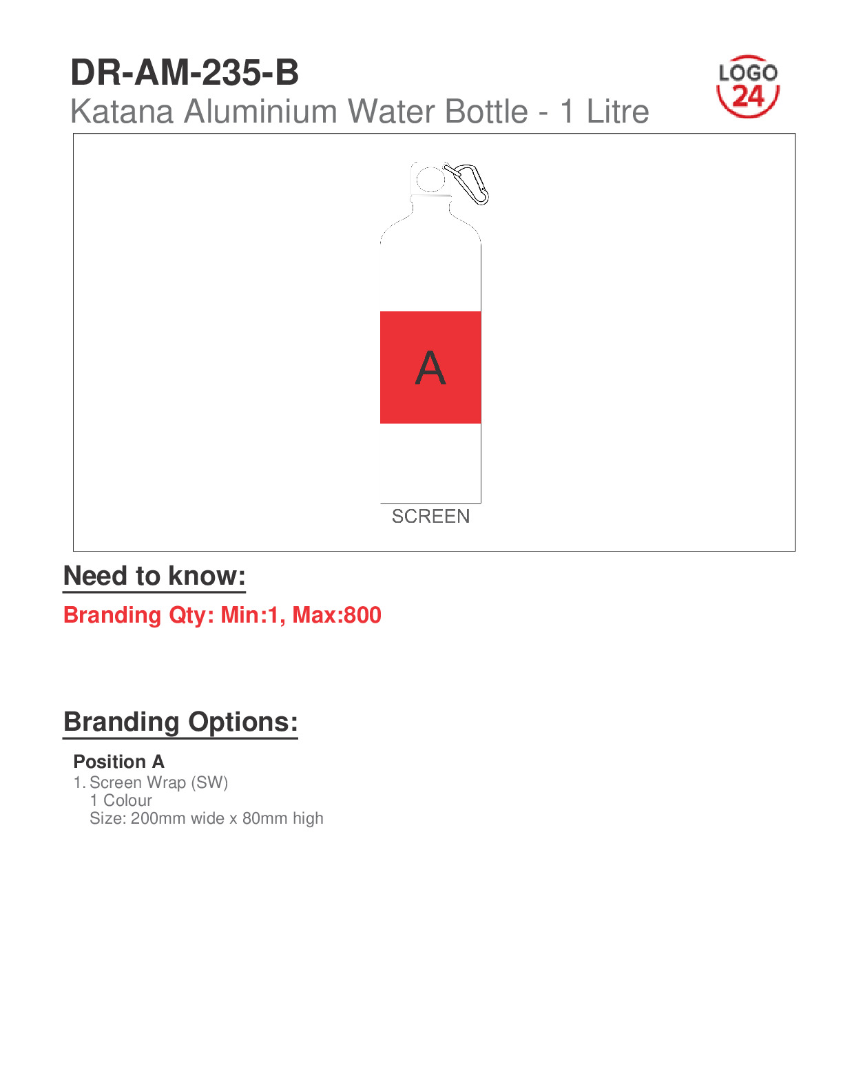 Katana Aluminium Water Bottle - 1 Litre