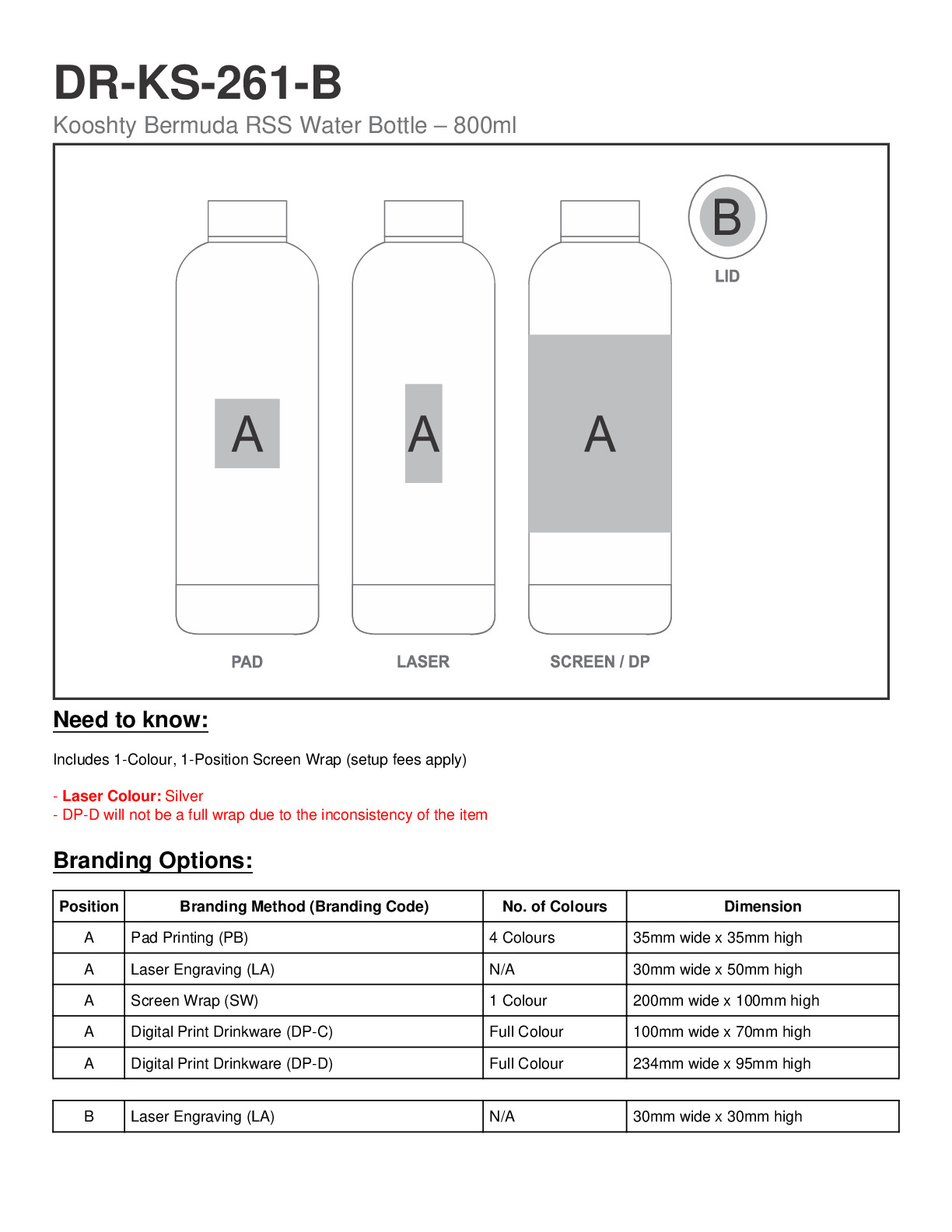 Kooshty Bermuda Recycled Stainless Steel Water Bottle – 800ml