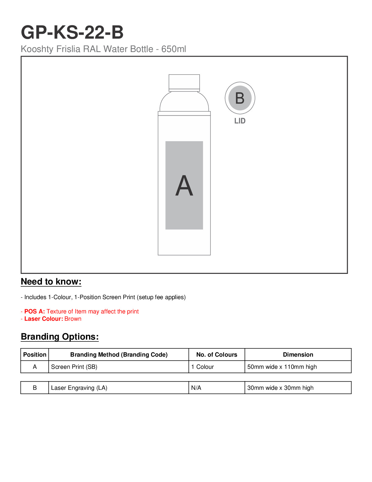 Kooshty Frislia Recycled Aluminium Water Bottle - 650ml