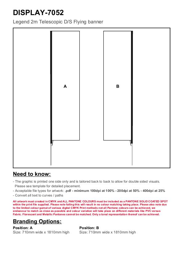 Legend 2M Sublimated Telescopic Double-Sided Flying Banner - 1 complete unit