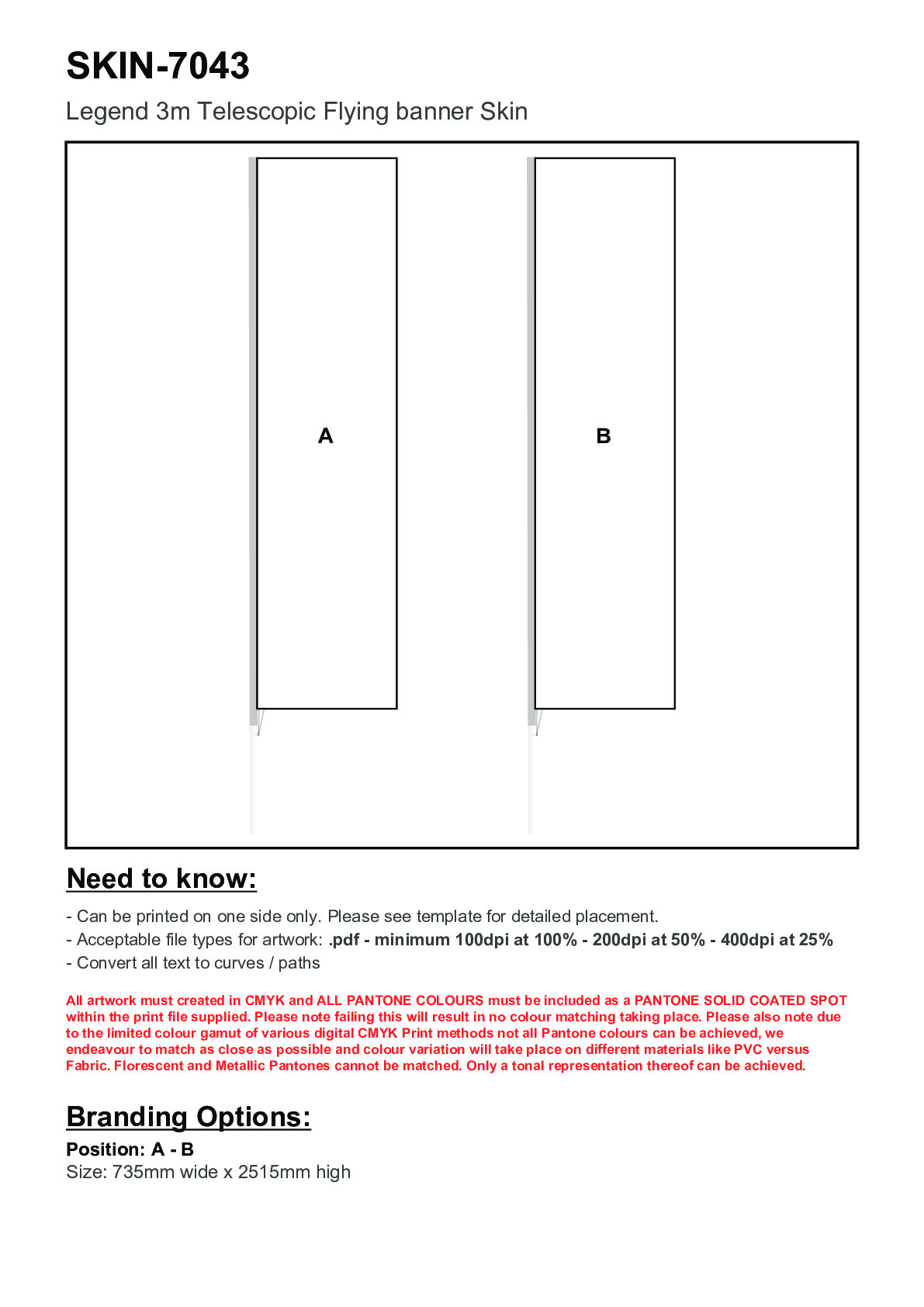 Legend 3m Sublimated Telescopic Flying Banner Skin - Set Of 2 (Excludes Hardware)