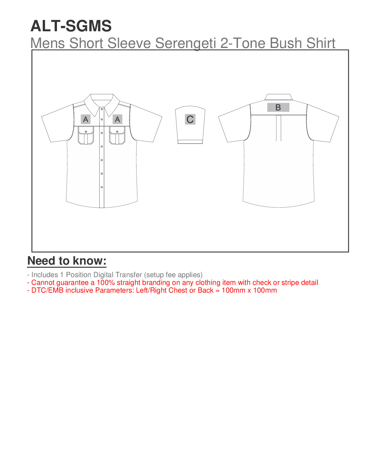 Mens Short Sleeve Serengeti 2-Tone Bush Shirt