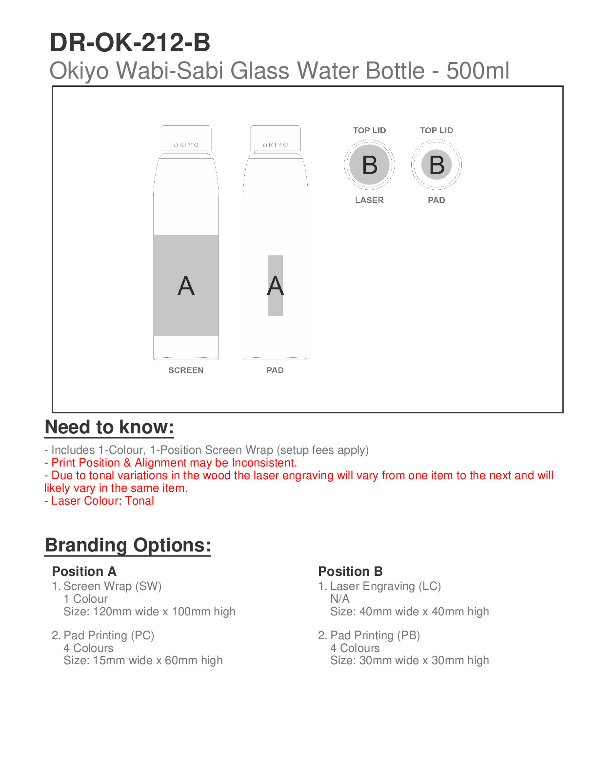 Okiyo Wabi-Sabi Glass Water Bottle - 500ml