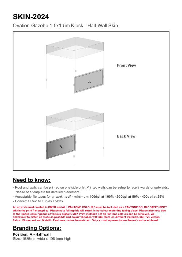 Ovation Sublimated Gazebo 1.5m X 1.5m - Half-Wall (Excludes Hardware)