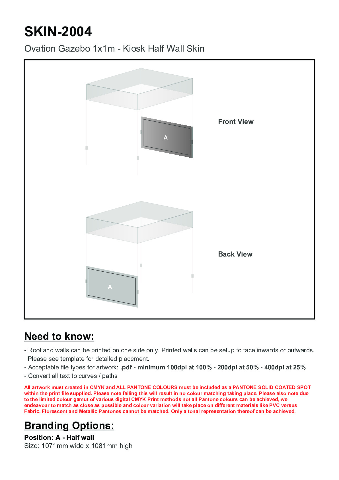 Ovation Sublimated Gazebo 1m X 1m Kiosk - Half Wall (Excludes Hardware)