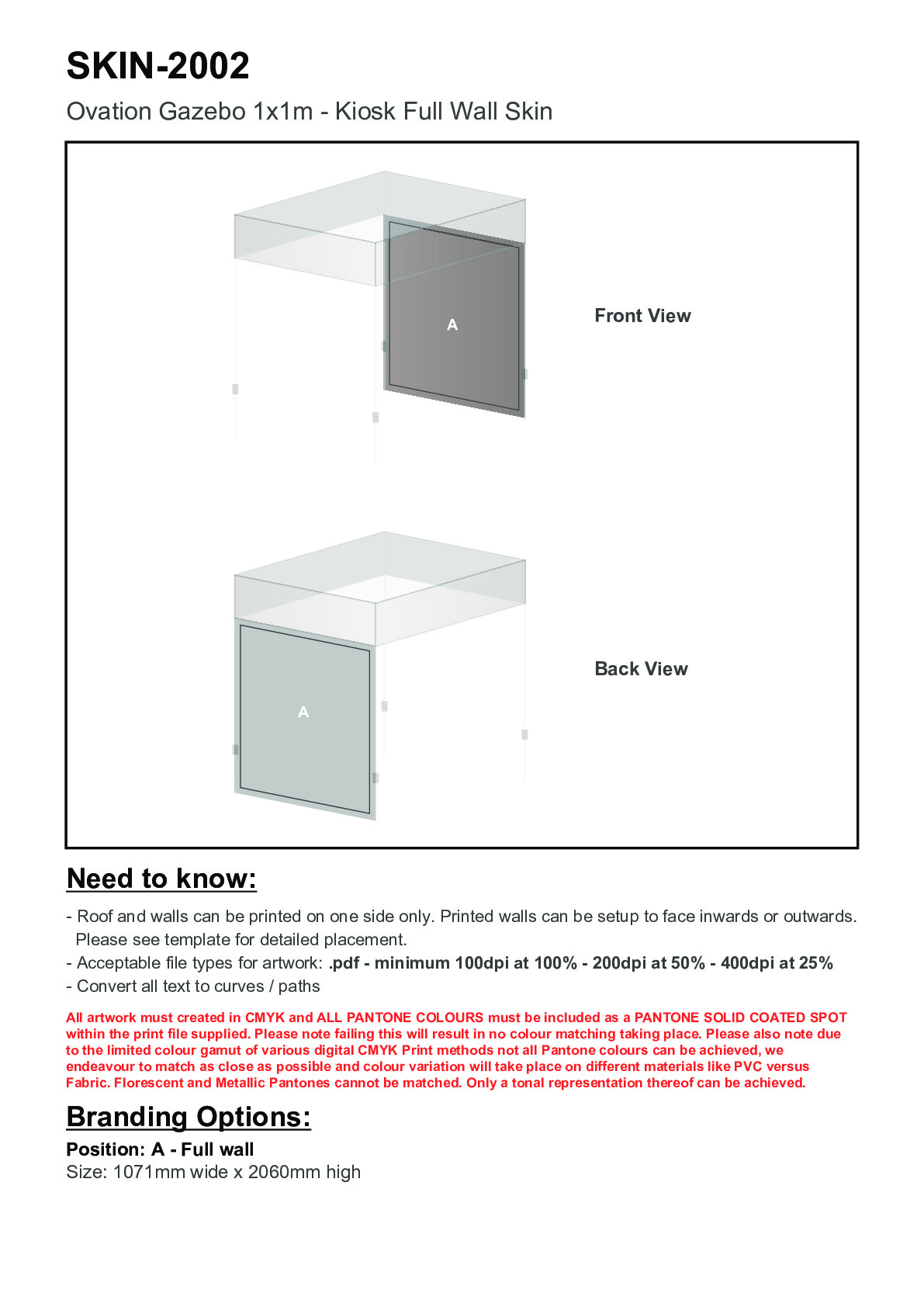 Ovation Sublimated Gazebo 1m X 1m Kiosk Roof (Excludes Hardware)