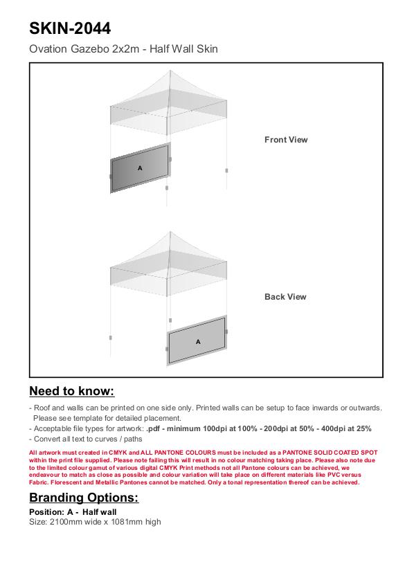 Ovation Sublimated Gazebo 2m X 2m - Half-Wall (Excludes Hardware)