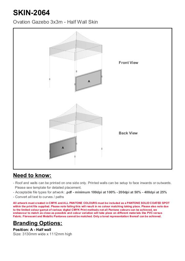 Ovation Sublimated Gazebo 3m X 3m - Half-Wall (Excludes Hardware)