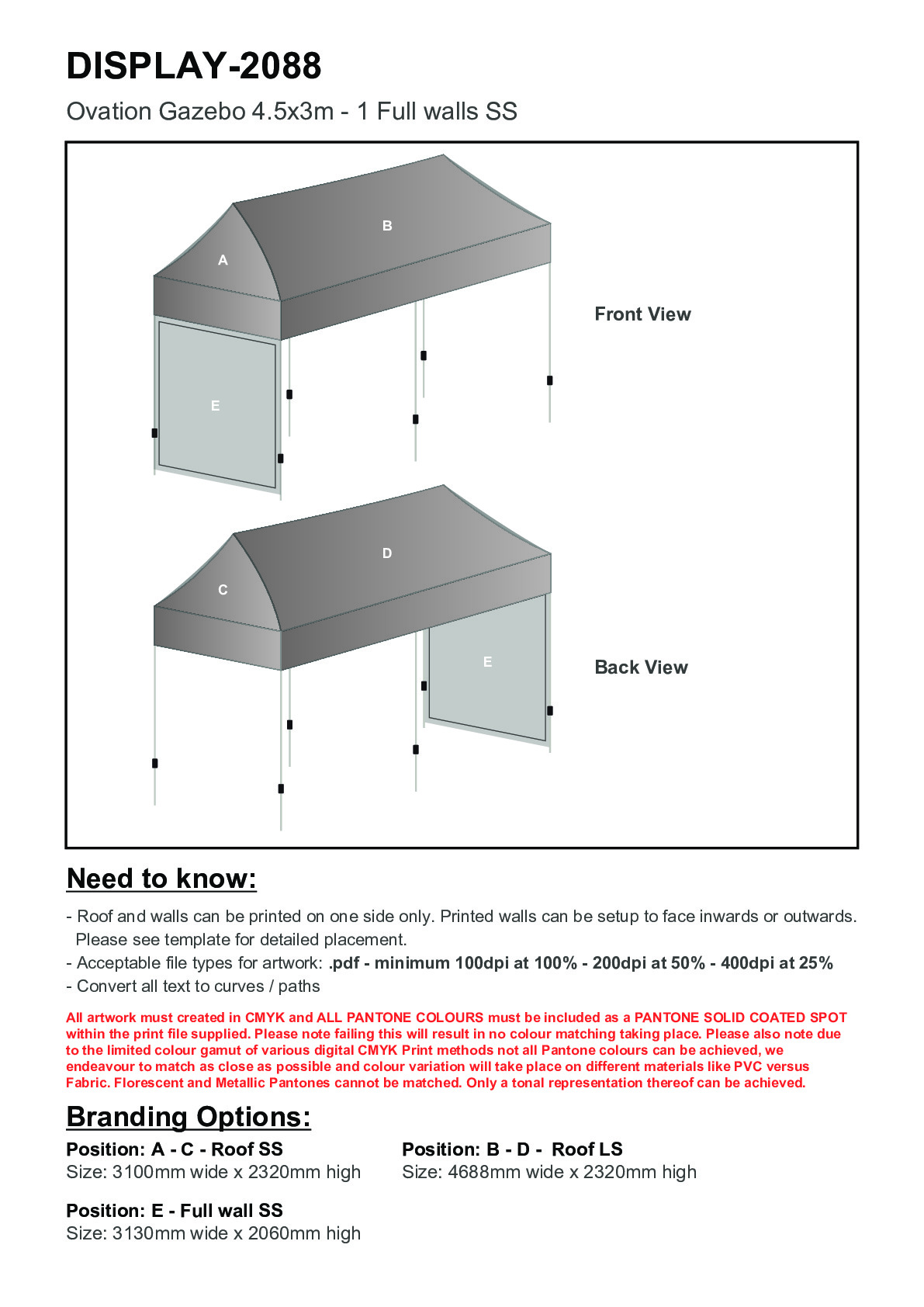 Ovation Sublimated Gazebo 4.5m X 3m - 1 Short Full-Wall Skin