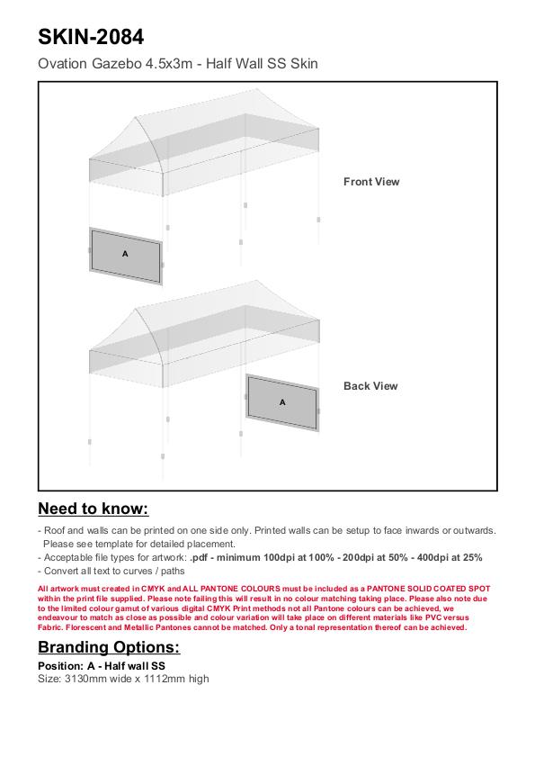 Ovation Sublimated Gazebo 4.5m X 3m - Short Side Half-Wall (Excludes Hardware)