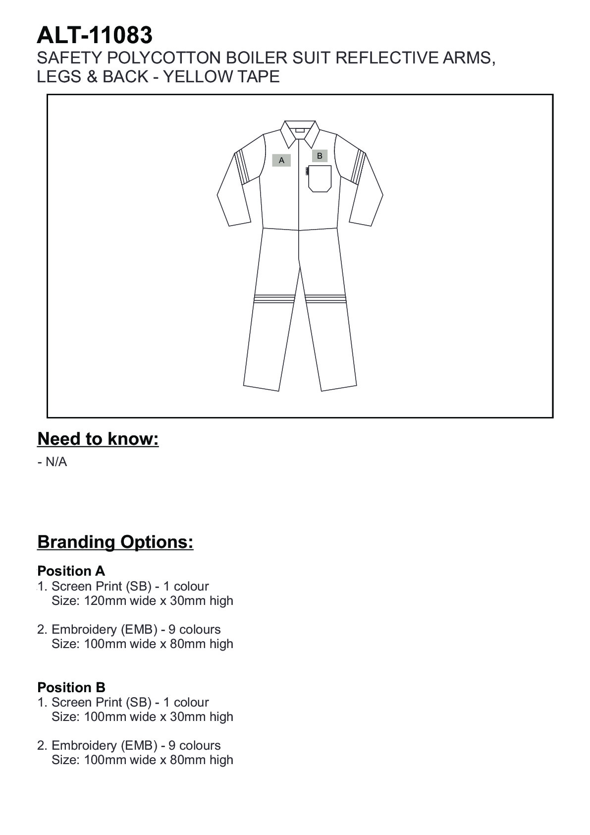Safety Polycotton Boiler Suit - Reflective Arms Legs & Back - Yellow Tape