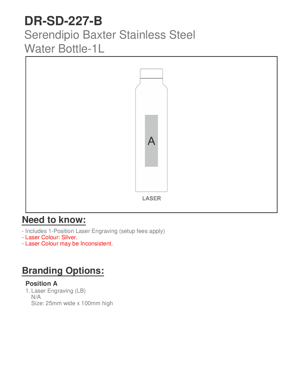 Serendipio Baxter Stainless Steel Water Bottle - 1 Litre