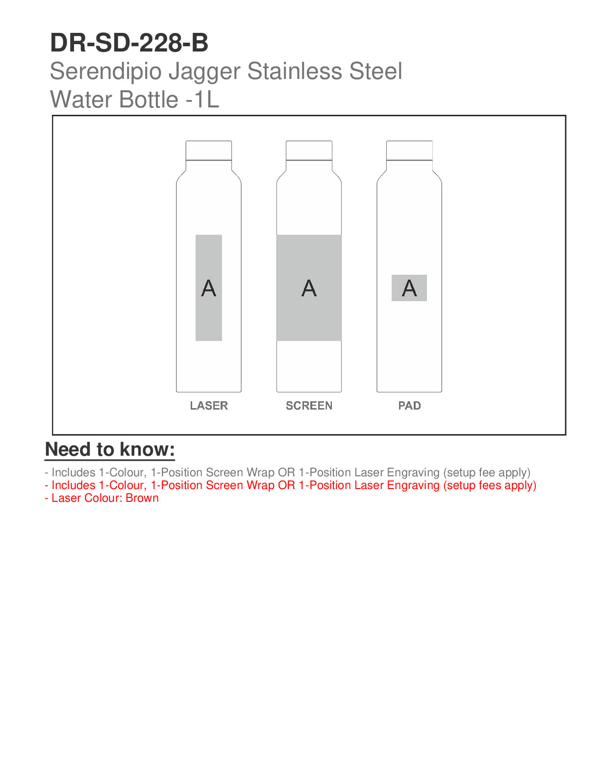 Serendipio Jagger Stainless Steel Water Bottle - 1 Litre