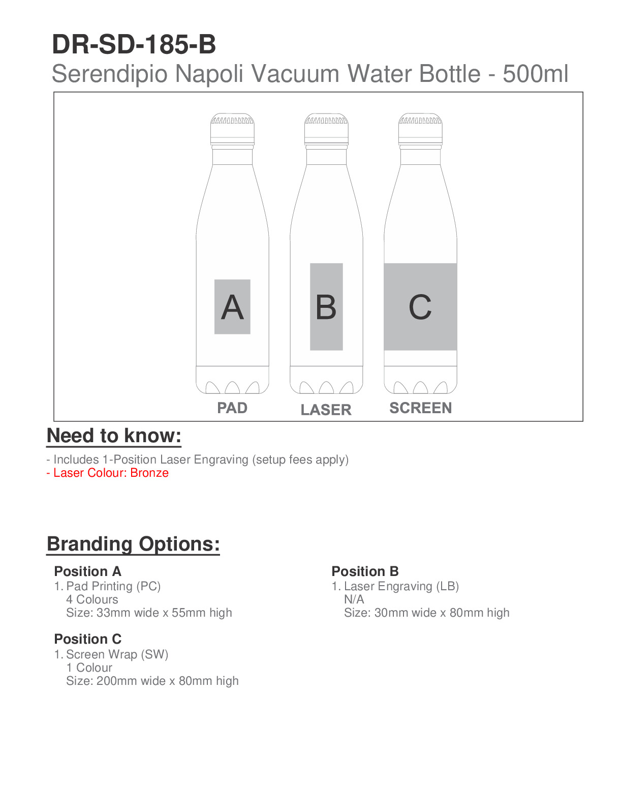 Serendipio Napoli Stainless Steel Vacuum Water Bottle - 500ml