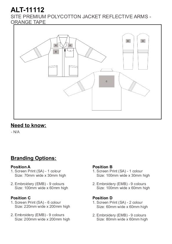 Site Premium Polycotton Jacket - Reflective Arms - Orange Tape