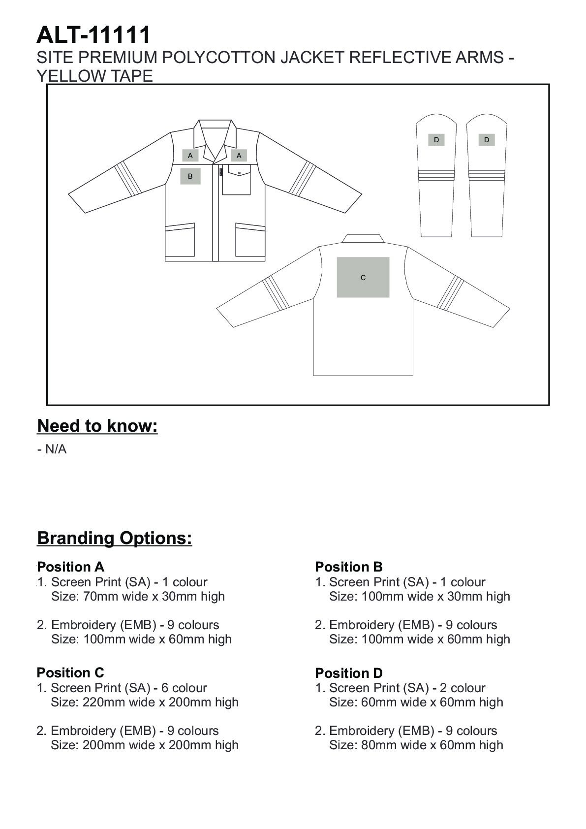 Site Premium Polycotton Jacket - Reflective Arms - Yellow Tape