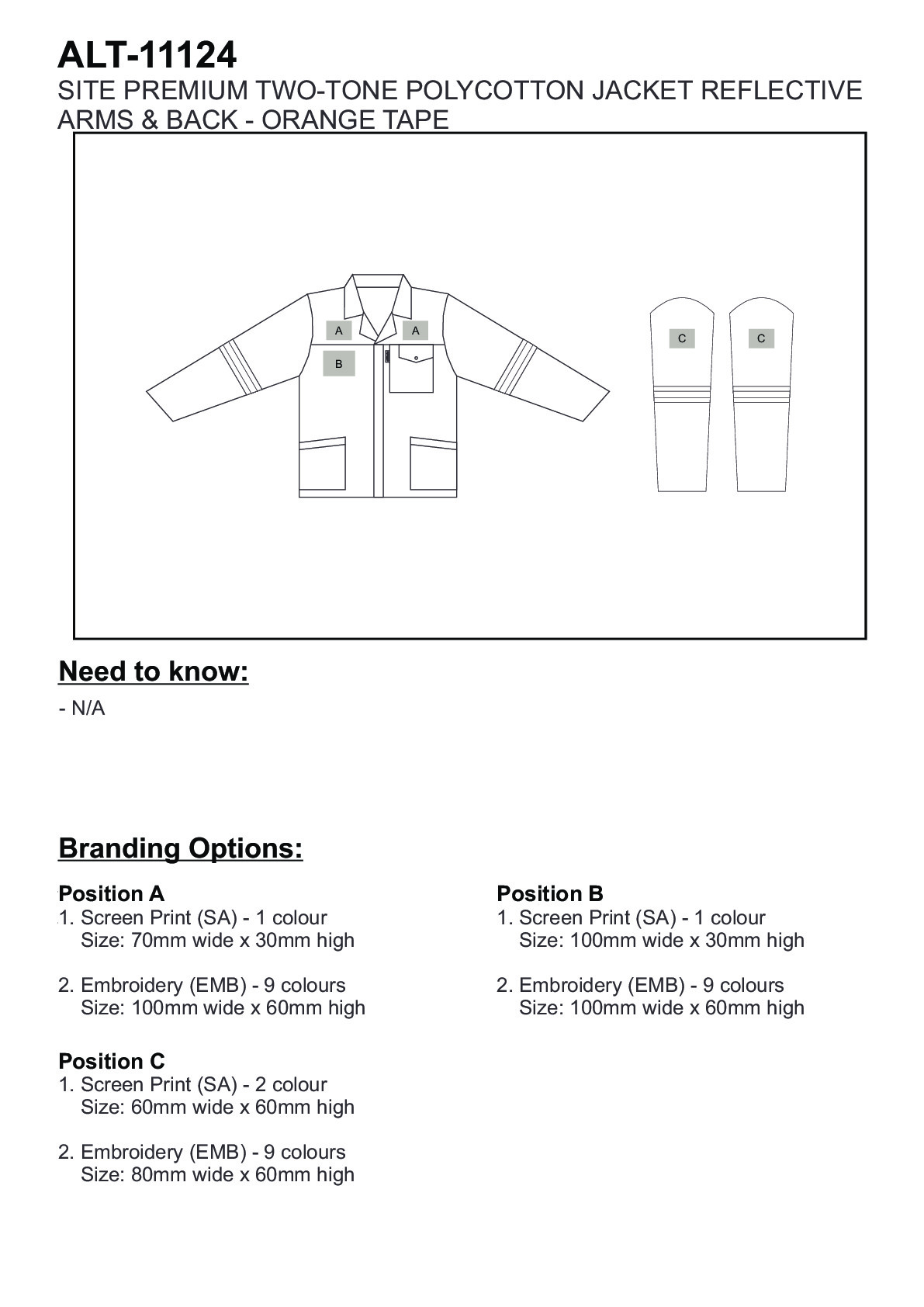 Site Premium Two-Tone Polycotton Jacket - Reflective Arms & Back - Orange Tape