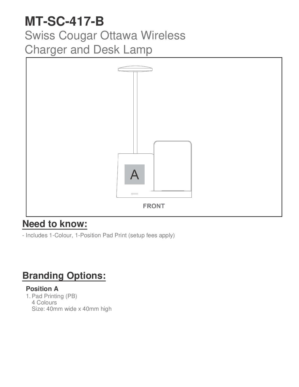 Swiss Cougar Ottawa Wireless Charger and Desk Lamp