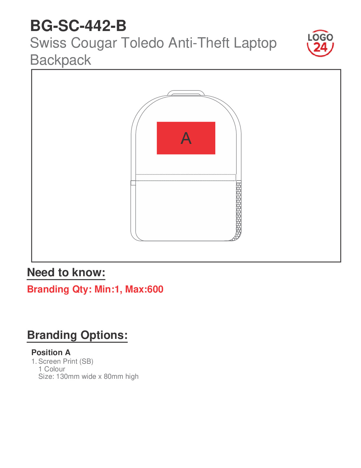 Swiss Cougar Toledo Anti-Theft Laptop Backpack