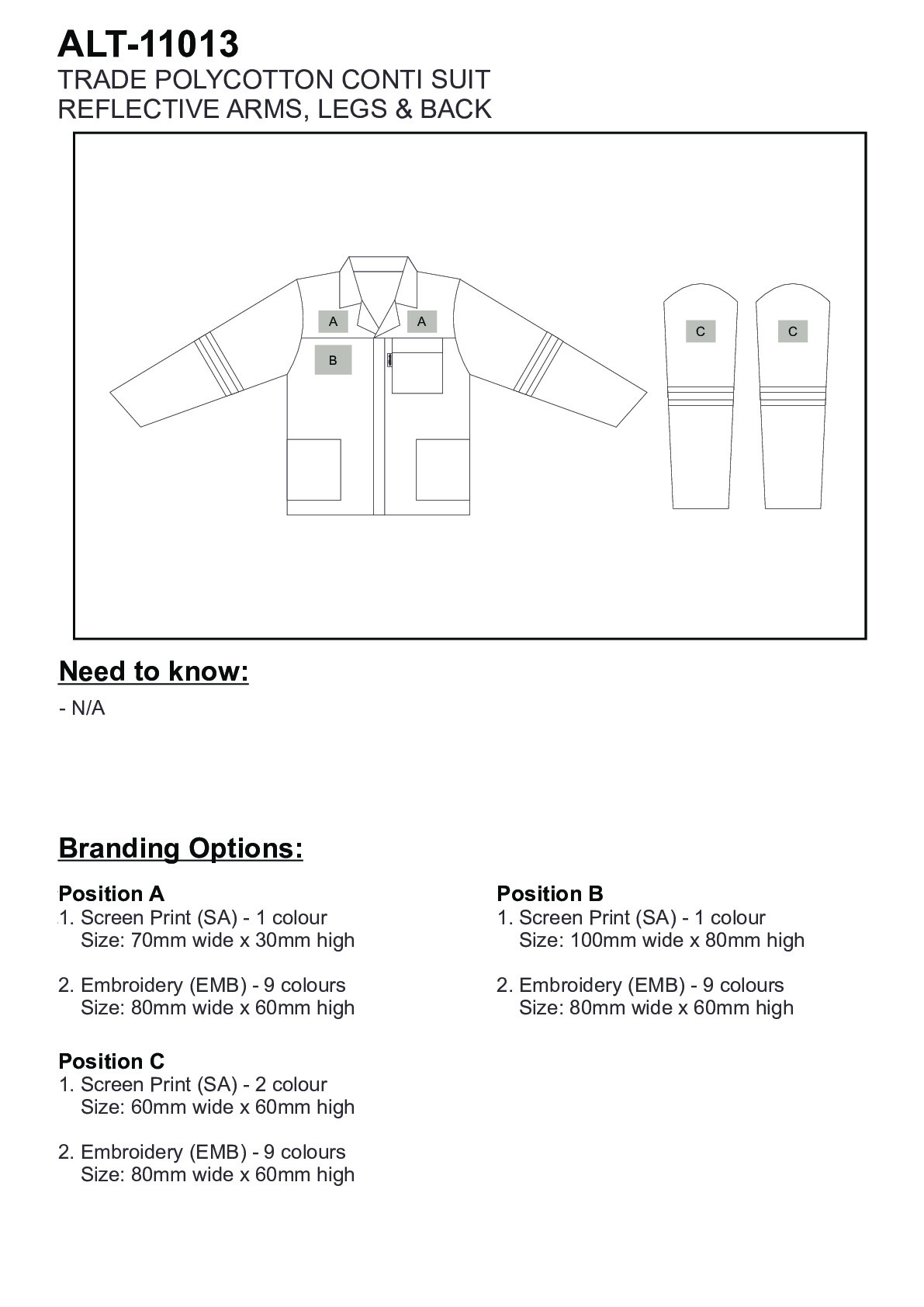 Trade Polycotton Conti - Suit Reflective Arms, Legs & Back - Orange Tape