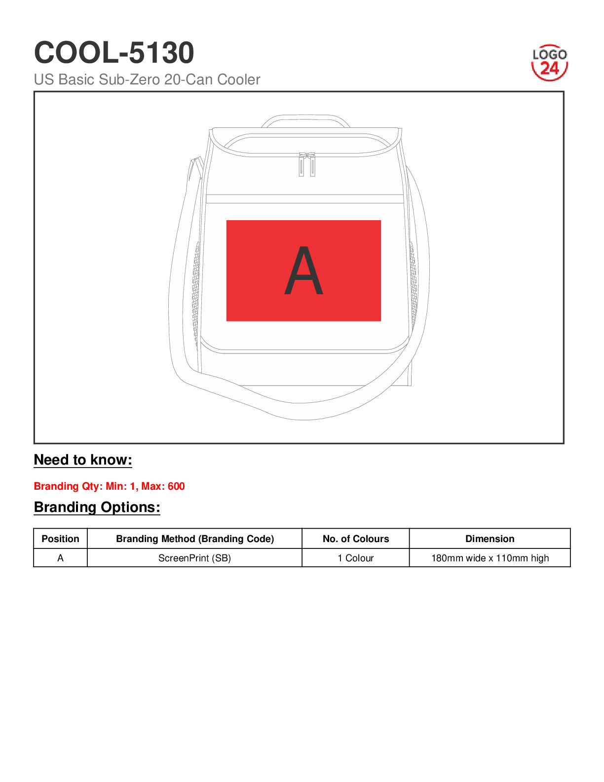 US Basic Sub-Zero 20-Can Cooler