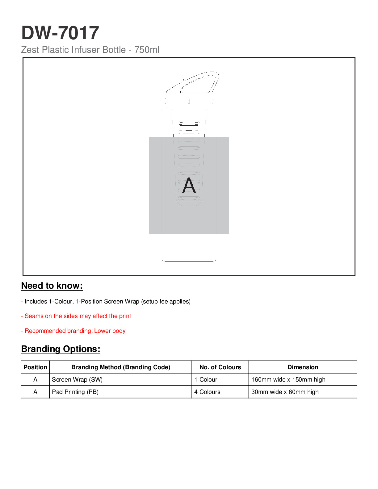 Zest Plastic Infuser Bottle - 750ml - Pink