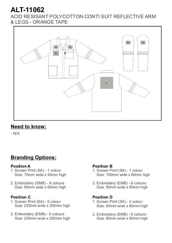 Acid Resistant Polycotton Conti Suit - Reflective Arm & Legs - Orange Tape