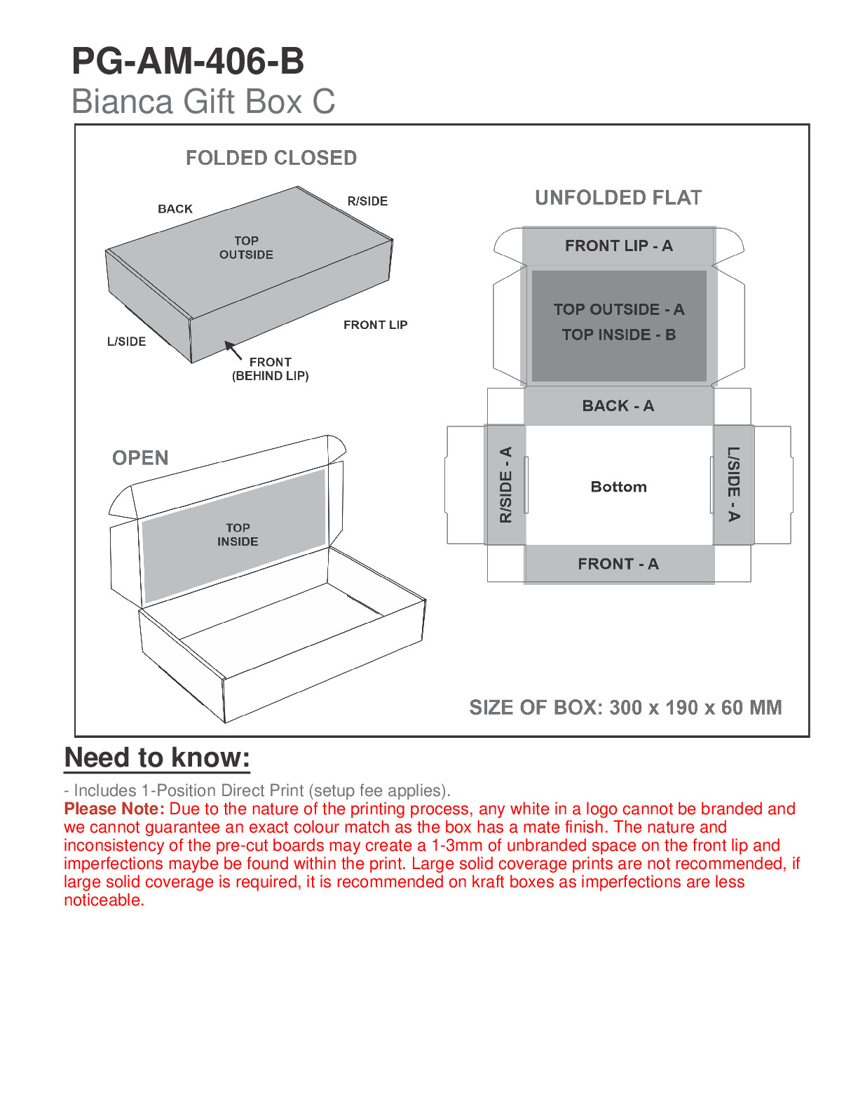 The nature and inconsistency of the pre-cut boards may create a 1-3mm of unbranded space on the front lip, and imperfections maybe be found within the print. Large solid coverage prints are not recommended, if large solid coverage is required, it is recommended on Kraft boxes as imperfections are less noticeable.