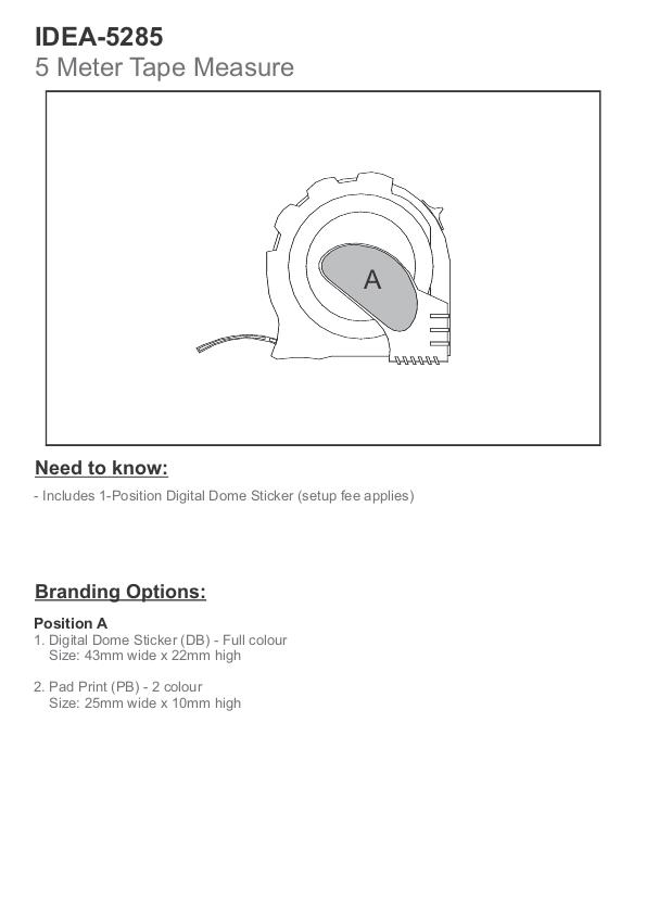 This 5 metre extendable tape measure has a lock mechanism to lock and release the tape as you need. One side has a clip to fix the tape measure to your belt, and the other side has space for branding of your logo.