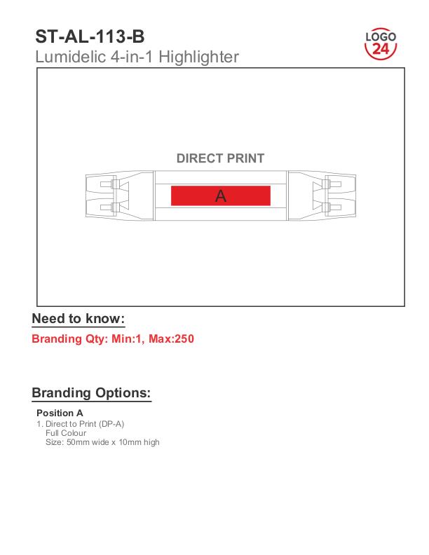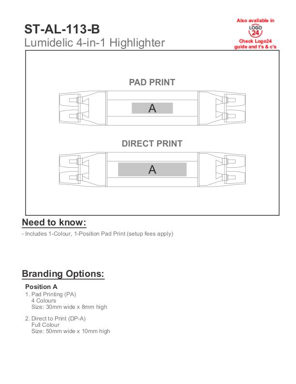 This highlighter gives you the option of 4 different coloured ink tips in one writing instrument. It has ample space for impressive branding of your logo or message.