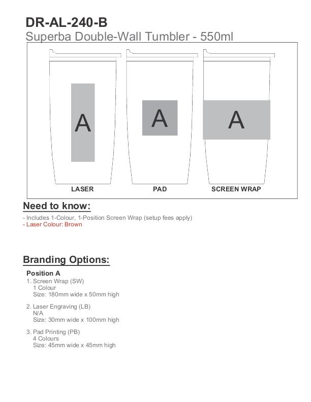 Enjoy your beverages on-the-go with this generously sized double-wall tumbler, which has plenty of space for bold branding.