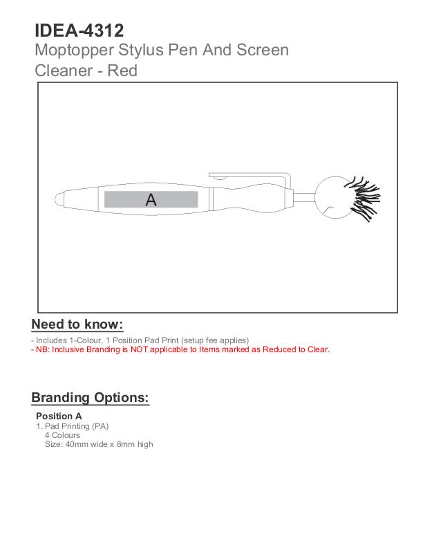 Ensure your logo stands out with this fun and functional MopTopper Stylus Pen. Its eye-catching features include a smiley face with a microfibre mop top that can be used to clean your mobile device, a silicone stylus tip, a bright funky coloured lower barrel with a matching striped tie and mop top hair.