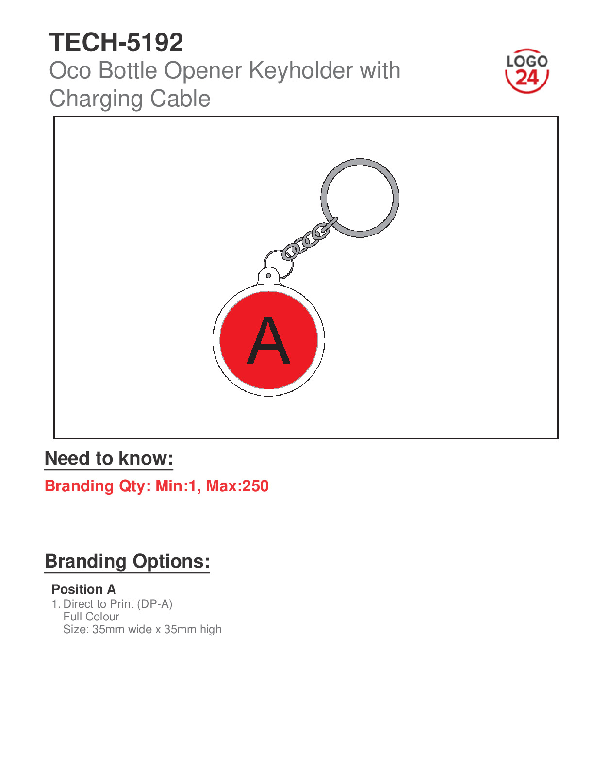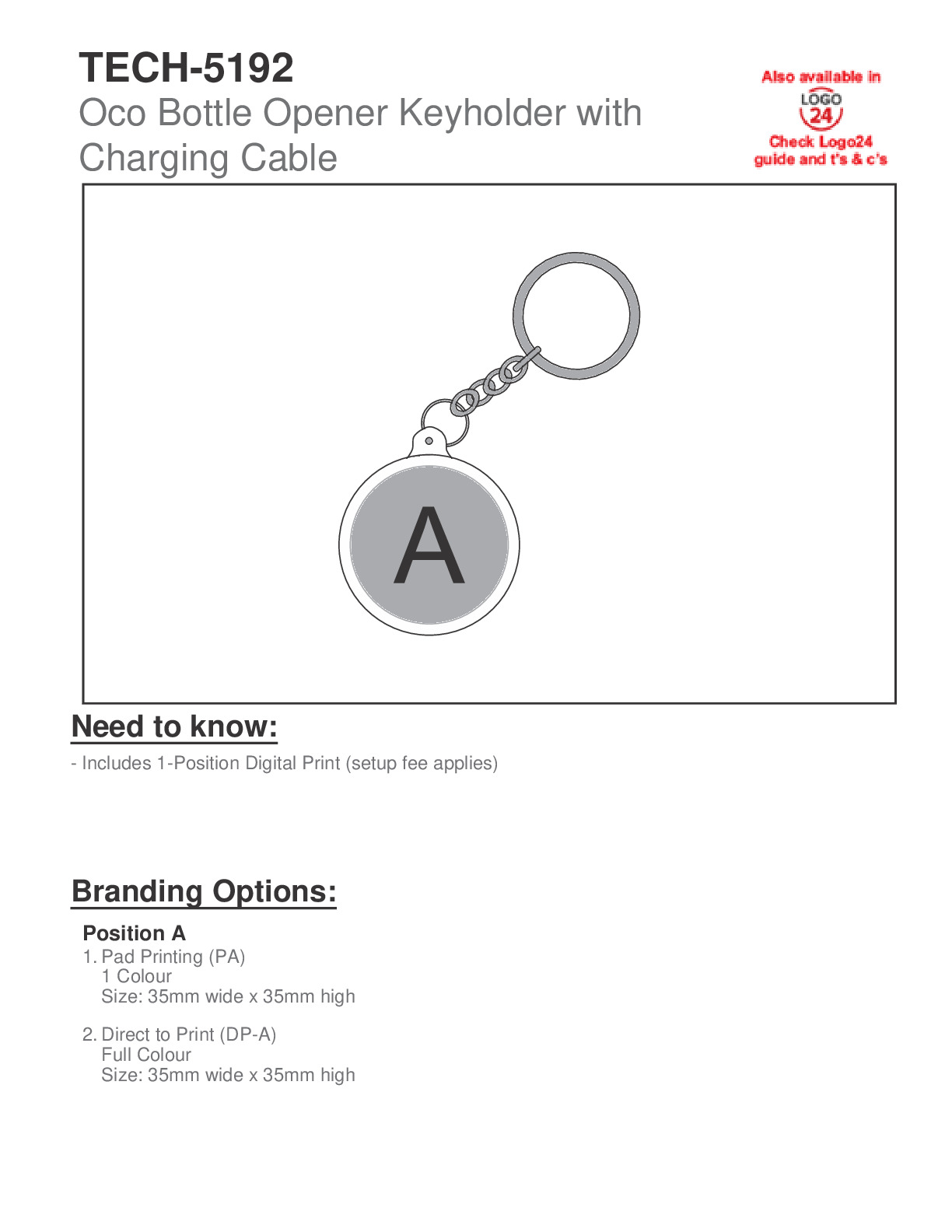This useful keyholder features a 3-in-1 charging cable and a bottle opener. The flat, white top surface can be digitally branded in full colour.
