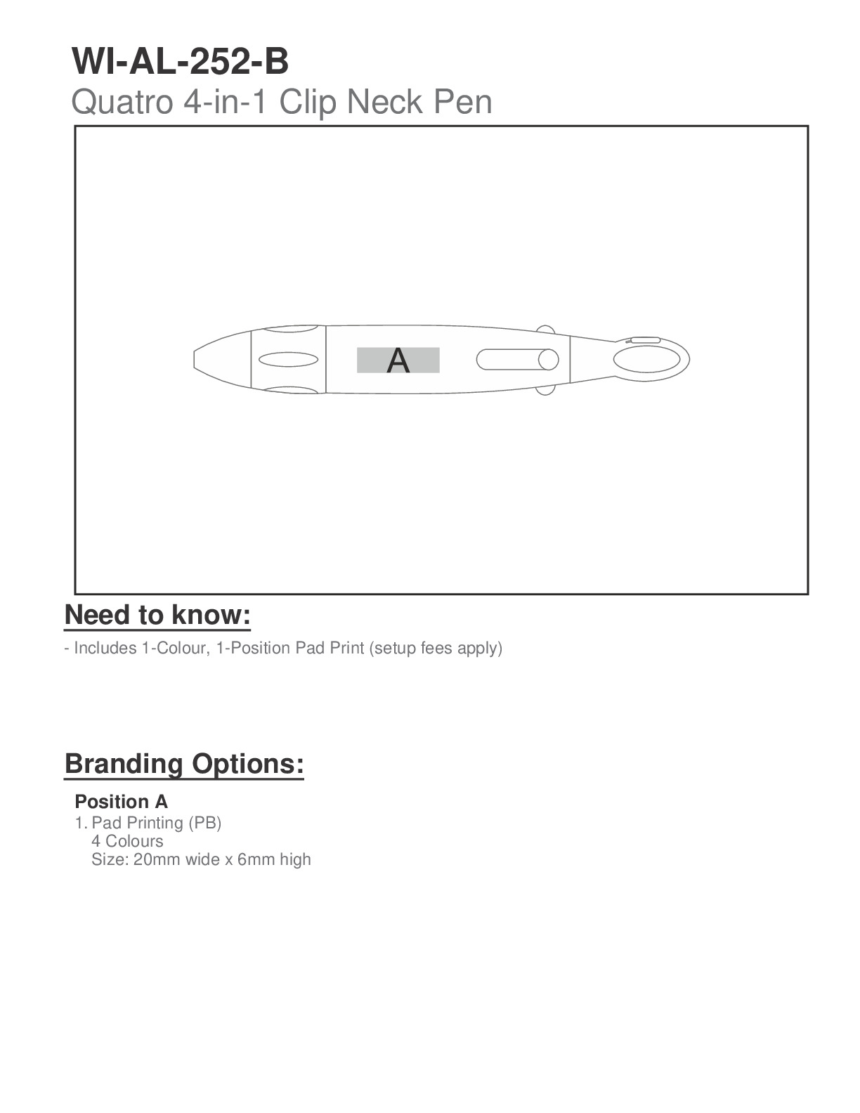Get 4 different colour ink refills in 1 with this useful carabiner clip ball pen, which includes a slim, basic lanyard to carry on your neck. Consider adding your own custom-made and branded lanyard.
