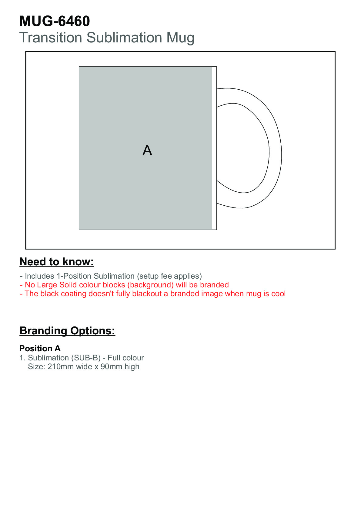 A unique, useful, and fun promotional gift. The outer wall of the mug appears black when cold then turns white when a hot beverage is added, revealing logo