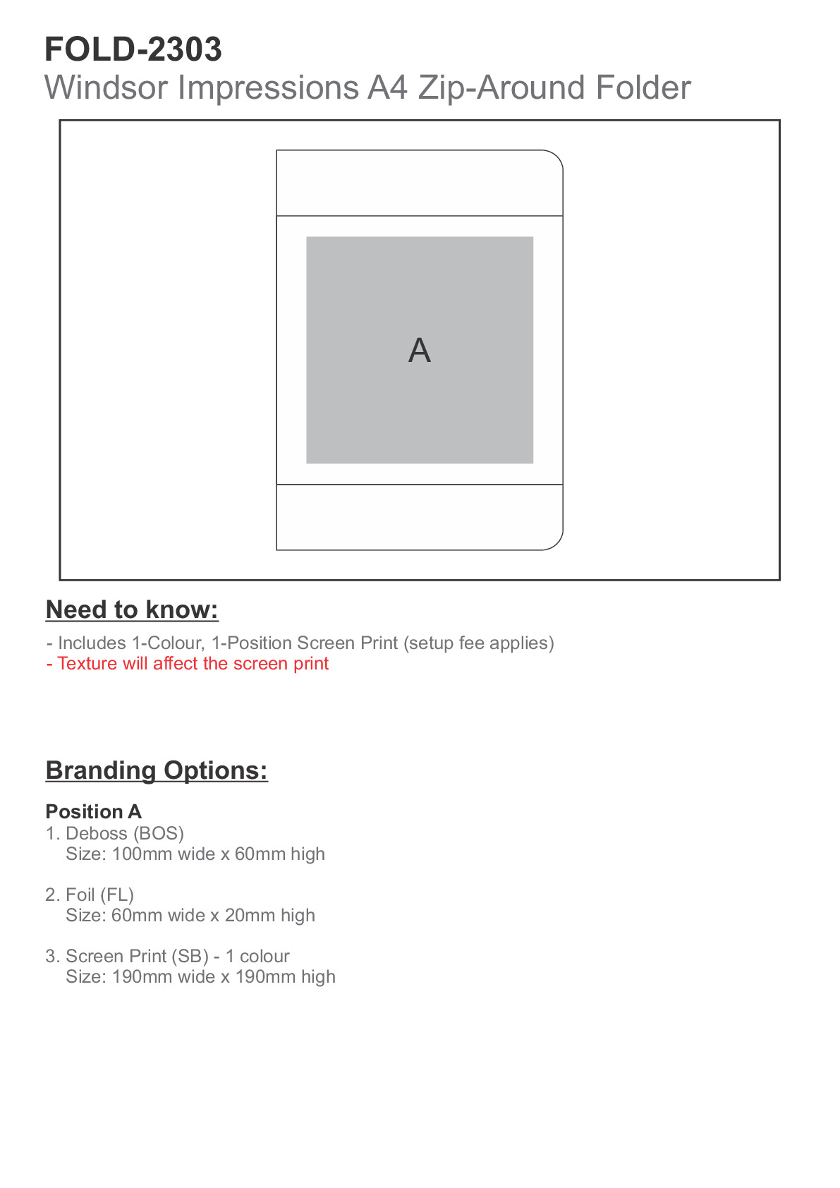 This zip-around folder has a pebble grain PU surface on the outside and features a document slot, 2 card slots and a pen loop on the inside.