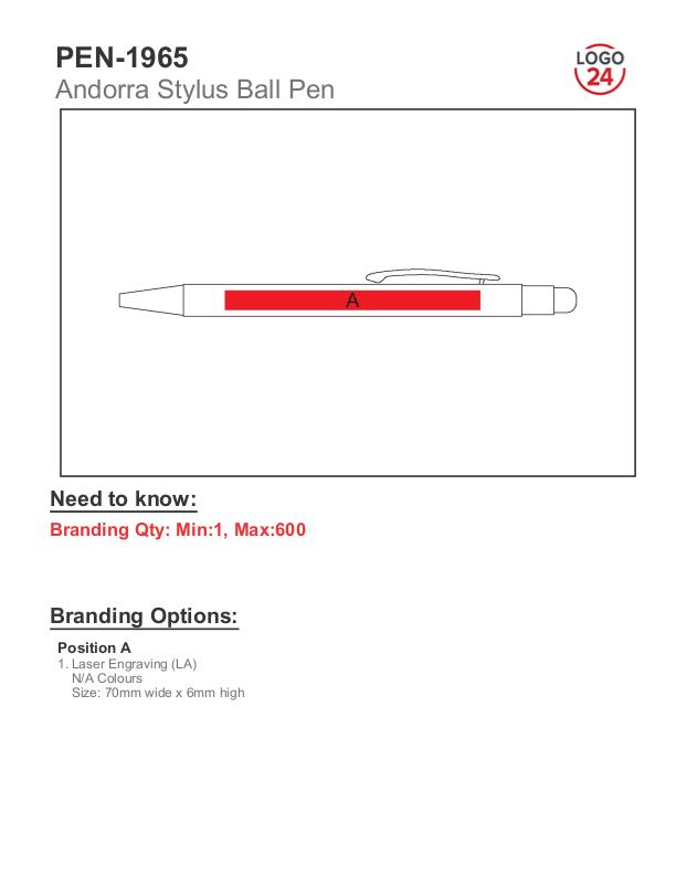 The barrel of this metal ball pen has a shiny chrome underlay, which is revealed when laser engraving a logo. This pen is fitted with a stylus for use with touch screen devices.