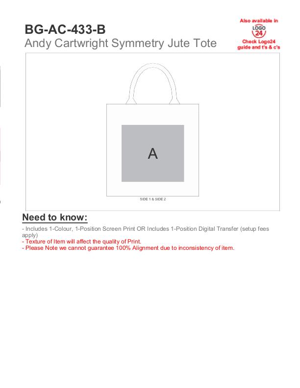 Symmetry, by South African designer, Andy Cartwright, is a collection of carefully curated products, featuring a striking symmetrical pattern. This laminated natural jute tote bag features the pattern printed on the two side panels of the bag, leaving room for the branding of your logo or message on the main front and back panels.