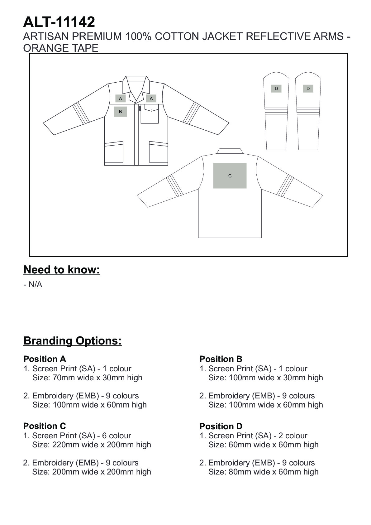 Artisan Premium 100% Cotton Jacket - Reflective Arms - Orange Tape