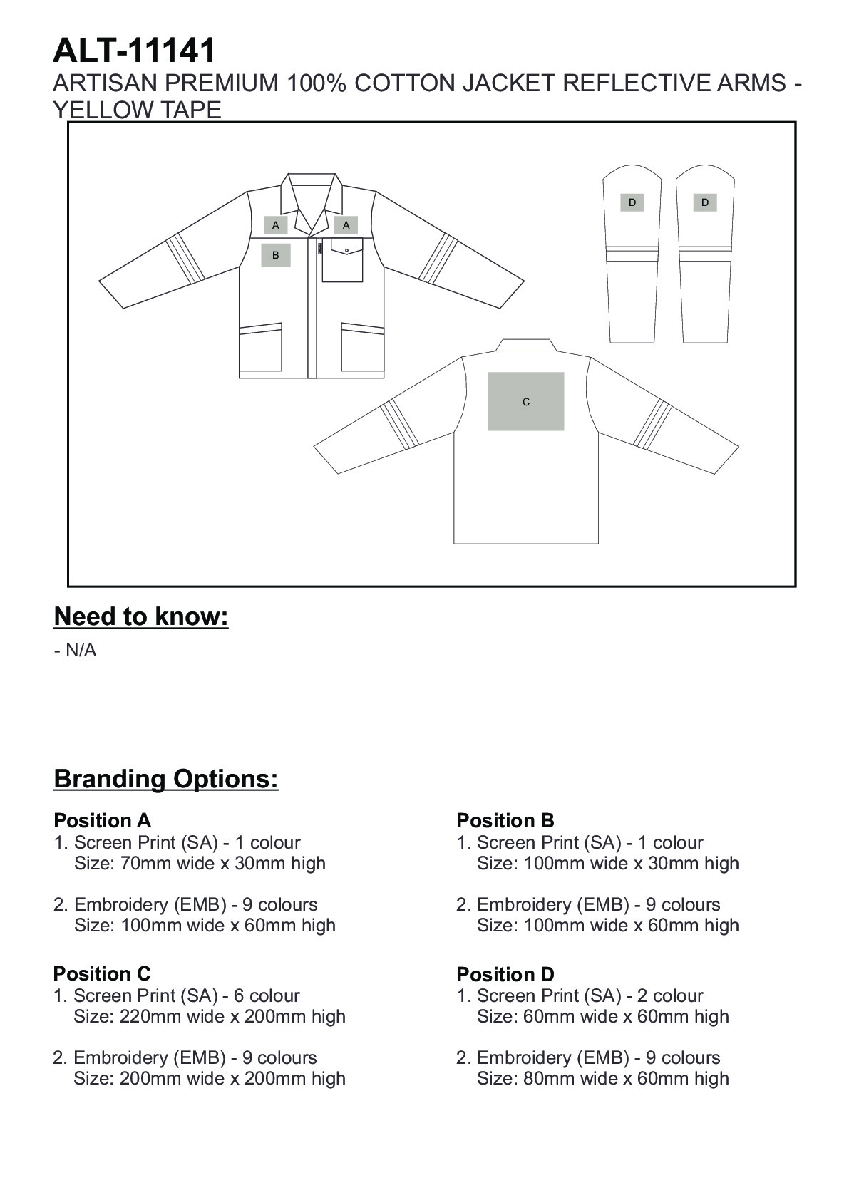Artisan Premium 100% Cotton Jacket - Reflective Arms - Yellow Tape