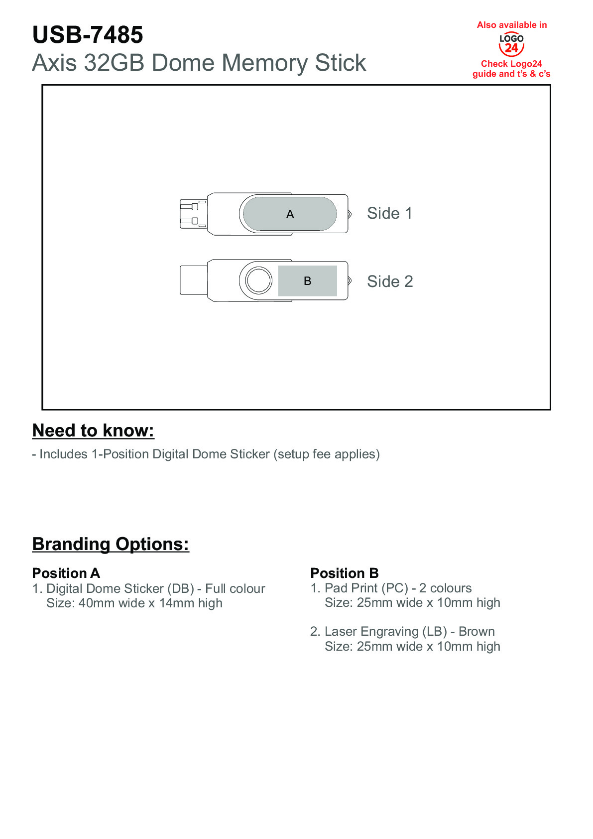 Classic flash drive with a soft-touch, lacquered base. The metal swivel is designed for vibrant, full-colour dome sticker branding which fits snugly into the recess. It has 32GB of memory, with a USB 2.0 interface. Presented in a transparent case.