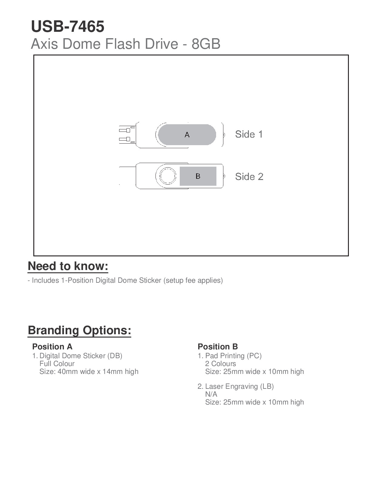 Classic flash drive with a soft-touch, lacquered base. The metal swivel is designed for vibrant, full-colour dome sticker branding which fits snugly into the recess. It has 8GB of memory, with a USB 2.0 interface. Presented in a transparent case.