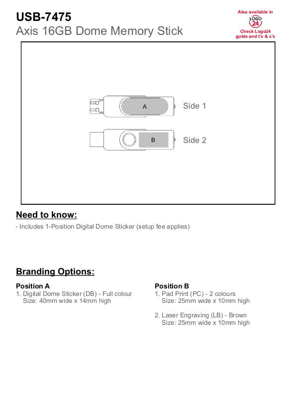 This popular 16GB USB flash drive model has a recess on the clip, for full-colour effective dome branding.