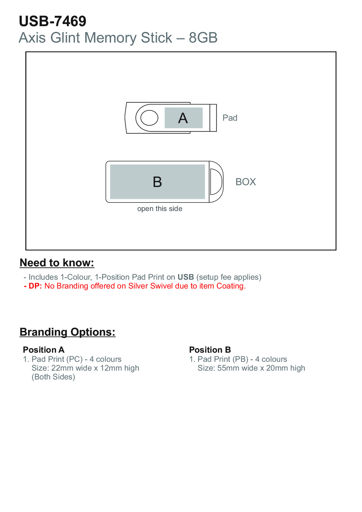 Classic flash drive with a silver metal swivel and a soft touch lacquered base. It has 8GB of memory, with a USB 2.0 interface. Presented in a transparent case.
