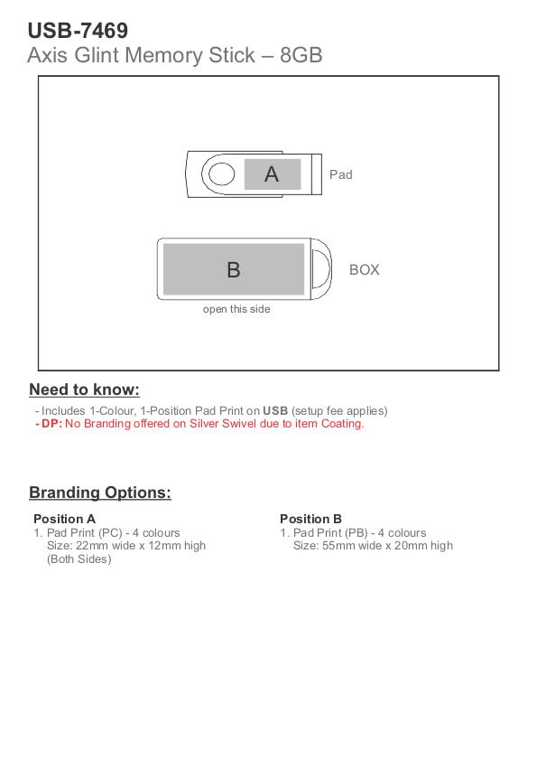Classic flash drive with a silver metal swivel and a soft touch lacquered base. It has 8GB of memory, with a USB 2.0 interface. Presented in a transparent case.