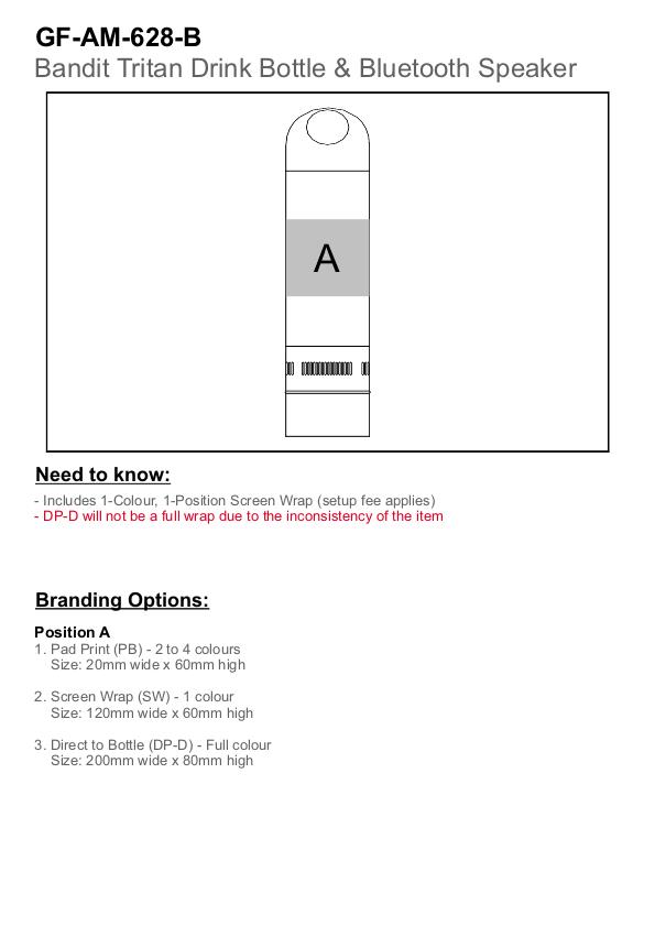 - Bandit Drink Bottle & Bluetooth Speaker Band: 31.5 ( w ) x 14 ( d ) x 56 ( h ) 300D cation adjustable, padded shoulder straps