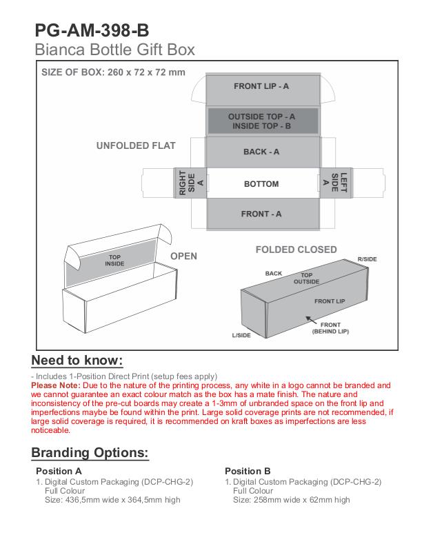 Due to the matte finish of the boxes and the nature of this printing process, the ink bonds by absorbing into the box material, thus resulting in the print possibly appearing less vibrant than it would with traditional Litho printing processes. Any white in a logo cannot be branded and we cannot guarantee an exact colour match as the box has a matt finish.