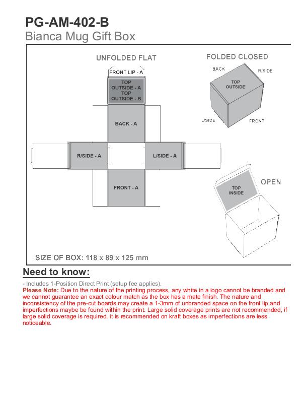 Packaging and presentation can make all the difference to the way your brand is perceived, or to how your message is received. Drinkware is a popular and well-received promotional gift category. This box fits most mugs, and it can elevate the product and your brand when custom printed.