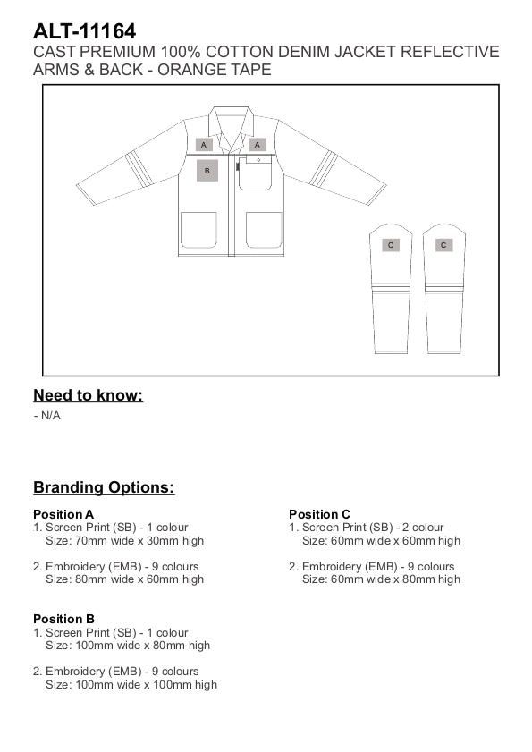 Cast Premium 100% Cotton Denim Jacket - Reflective Arms & Back - Orange Tape